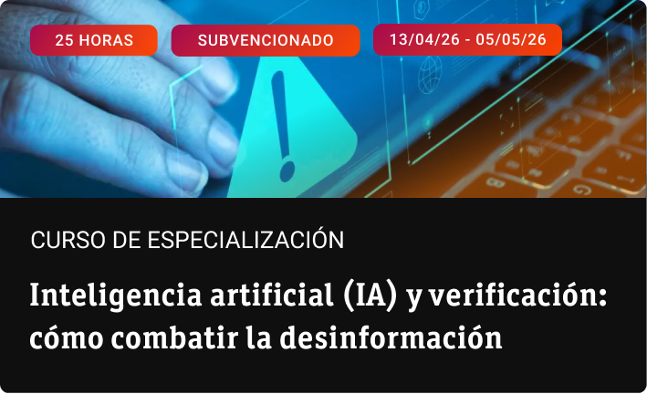 En este curso de especialización conocerás el funcionamiento, la metodología y las herramientas necesarias para combatir la desinformación y verificar la información en distintos formatos en un contexto mediático complejo y cambiante.